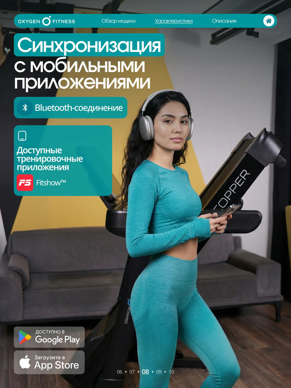 | Интеграция | Bluetooth для работы с тренировочным мобильным приложением (Fitshow™) |