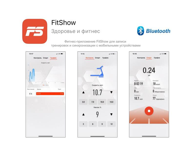 | Дополнительные характеристики | Приложения для синхронизации FitShow (подключение через Bluetooth) | Подставка под планшет есть |